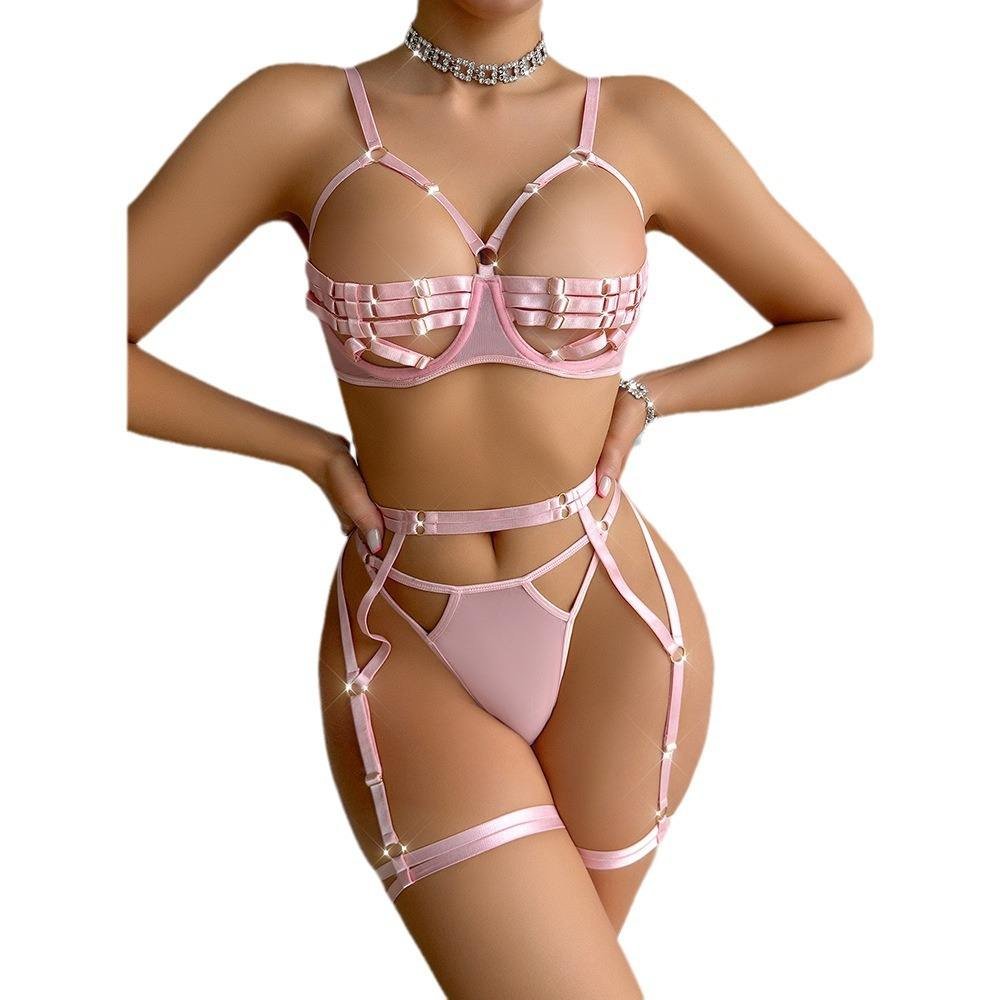 Pink Cut Out Strap Garter Bra Set