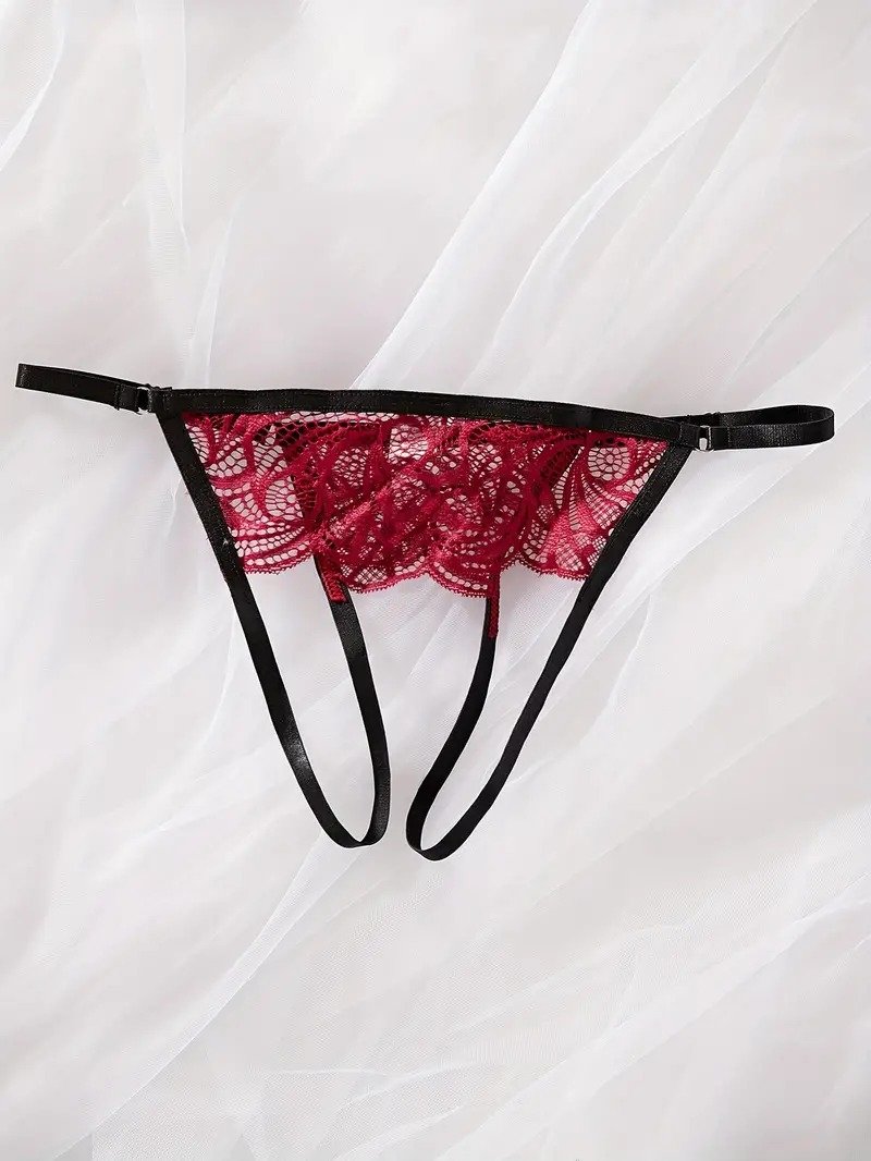 Sexy Black Red Lace GString With Open Strappy Sides & Back