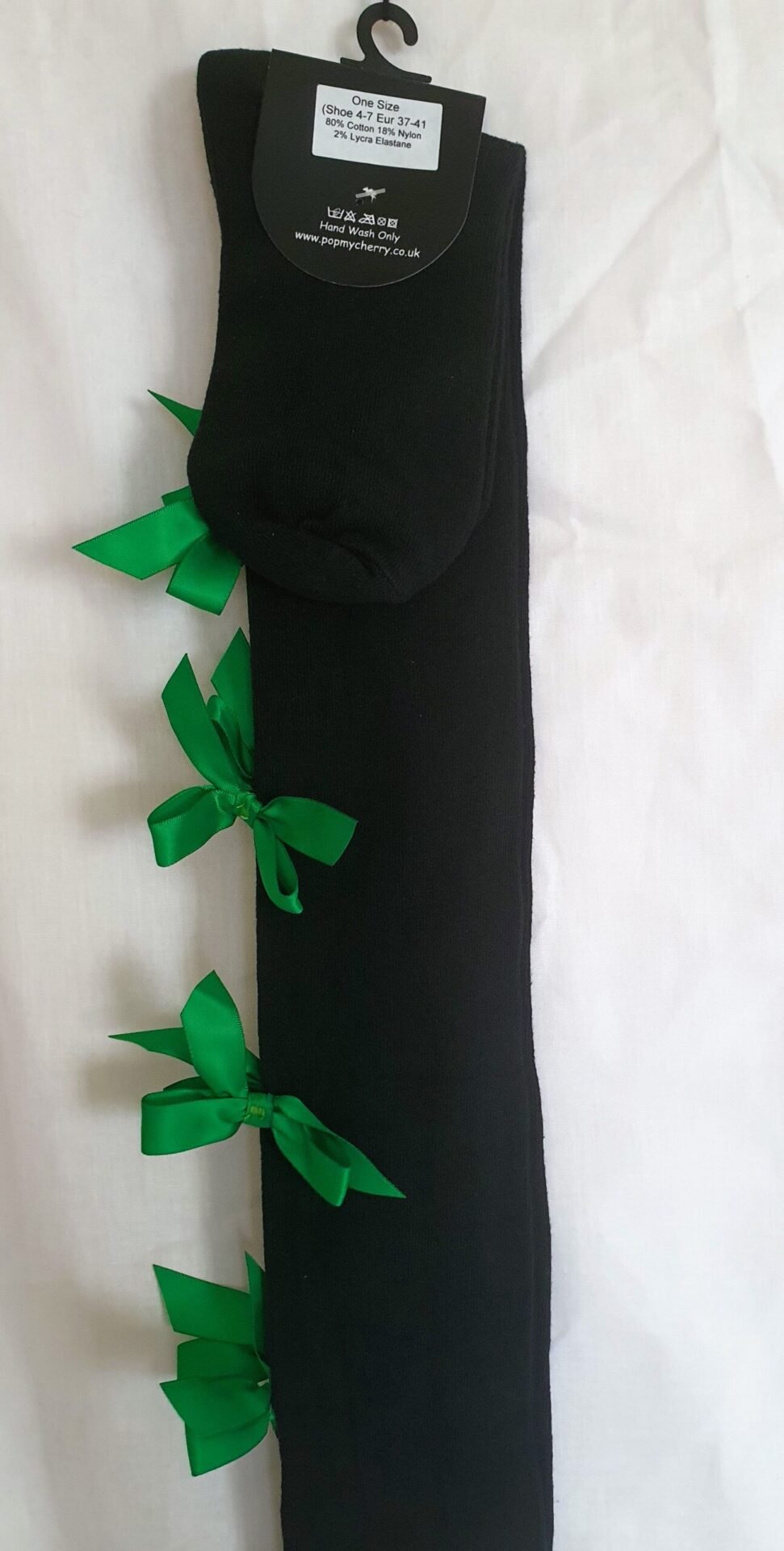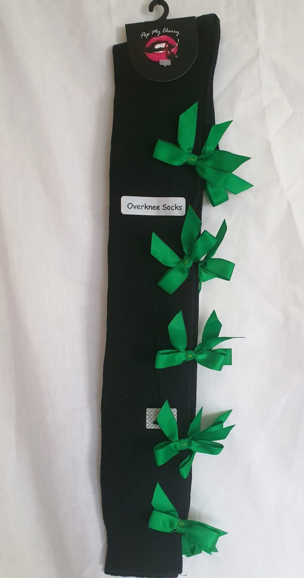Vintage Pop My Cherry Black Overknee Socks With Green Bows quantity