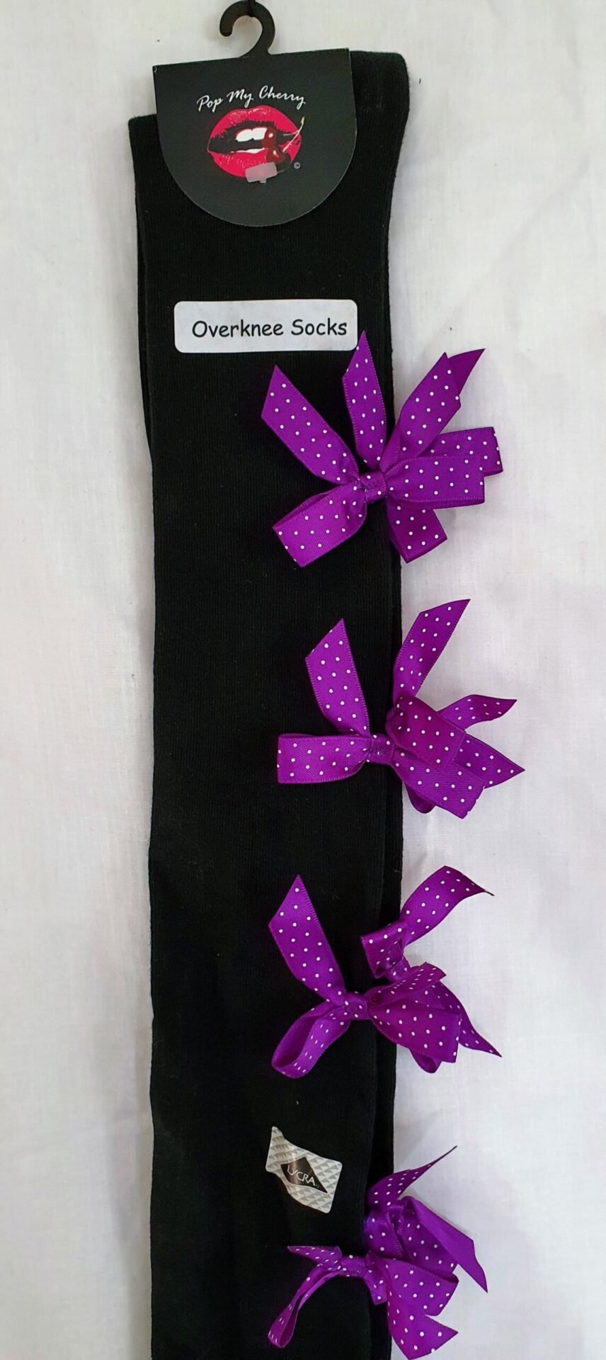 Vintage Pop My Cherry Black Overknee Socks With Purple Dotted Bows quantity