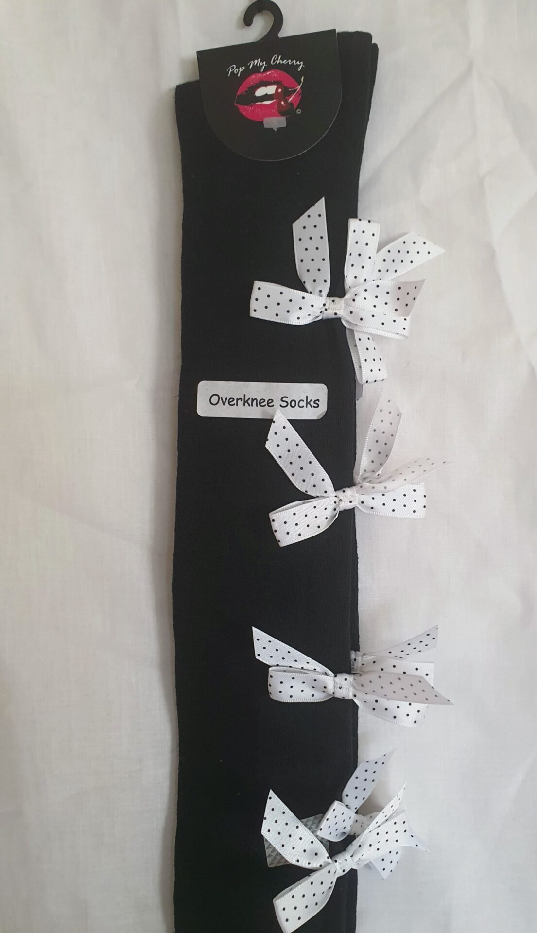 Vintage Pop My Cherry Black Overknee Socks With White Dotted Bows