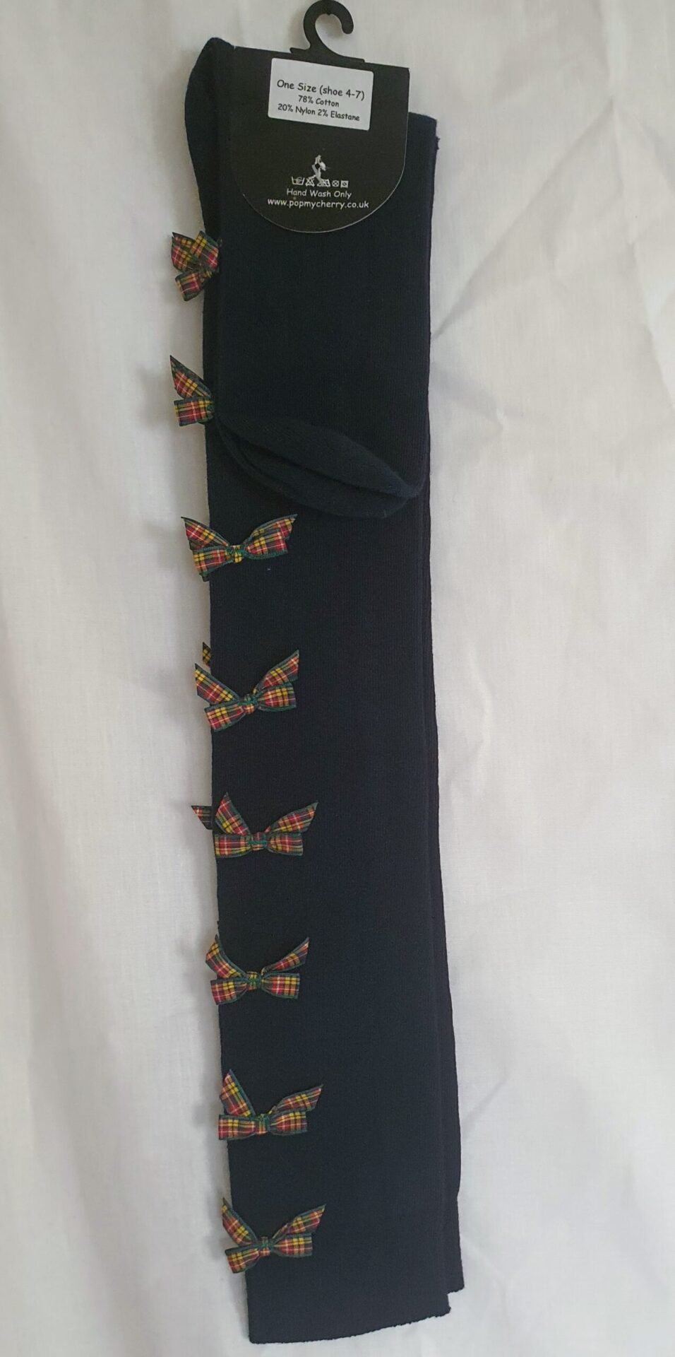Vintage Pop My Cherry Navy Overknee Socks With Tartan Bows quantity